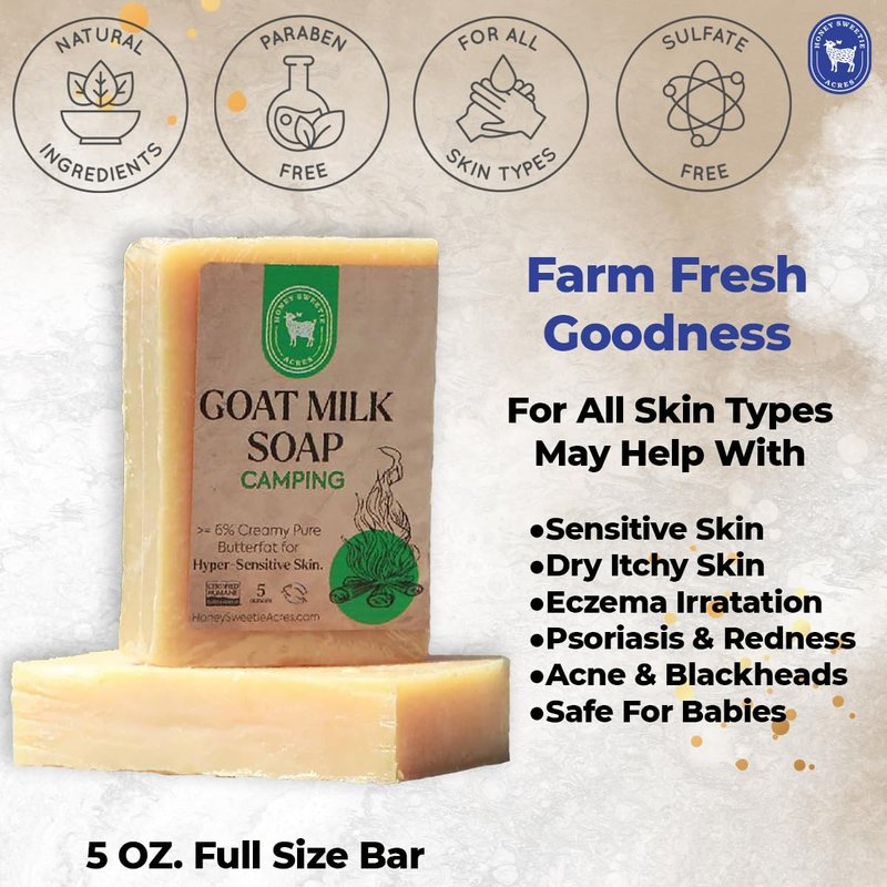 Honey Sweetie Acres Camping Outdoor Goat Milk Soap - All Natural Body Soap - 5 oz Goats Milk Soap - Handmade Goat Milk Soap Bar - Eczema Bar Soap - Moisturizing Bar Soap - Made in The USA