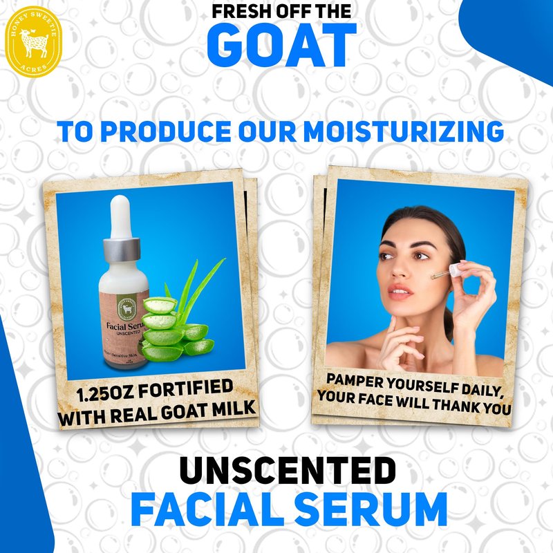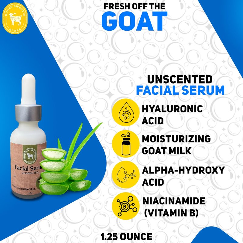 Honey Sweetie Acres Vitamin B Facial Serum with Organic Aloe, Niacinamide, Raw Goat Milk, and Hyaluronic Acid – 1.25 oz