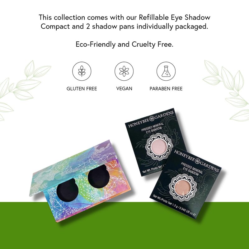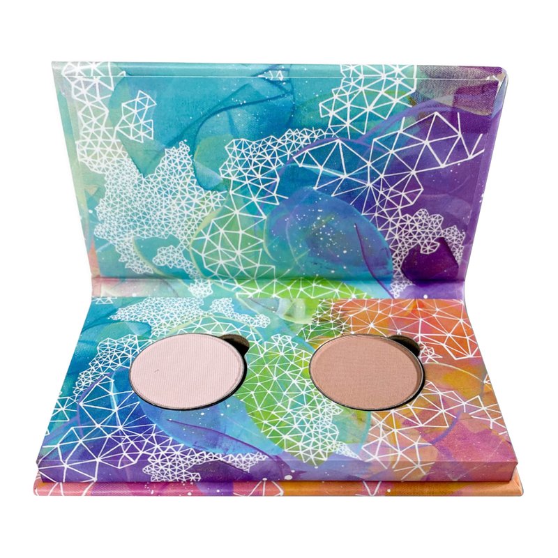 Honeybee Gardens Mini Skinny Duo Eye Shadow Compact in Cameo and Porcelain, Longlasting, Refillable & Customizable, Vegan, 26mm Pans