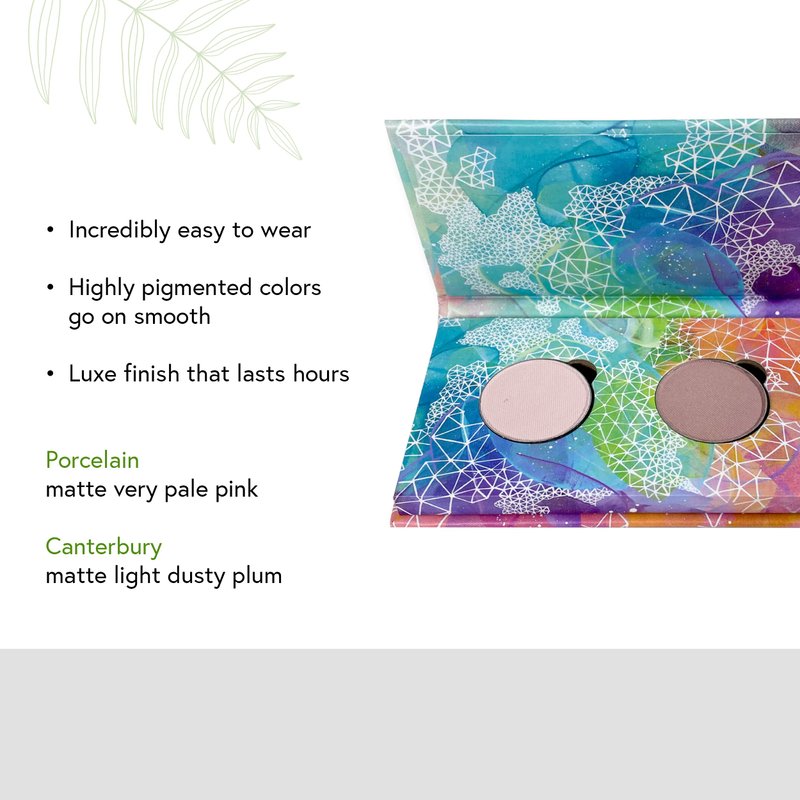 Honeybee Gardens Mini Skinny Duo Eye Shadow Compact in Canterbury and Porcelain, Longlasting, Refillable & Customizable, Vegan, 26mm Pans