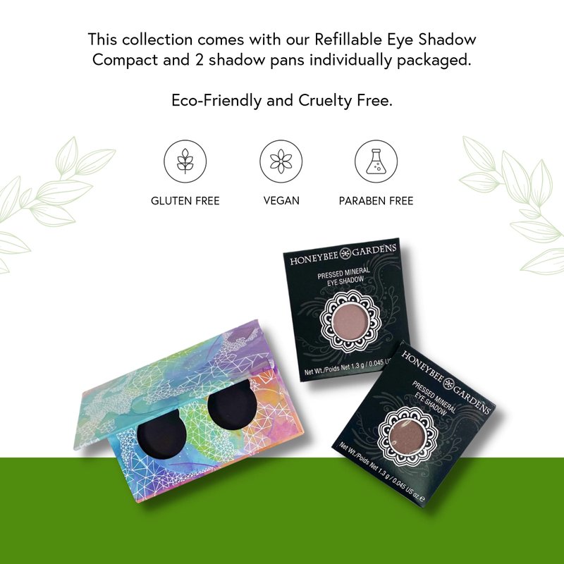 Honeybee Gardens Mini Skinny Duo Eye Shadow Compact in Tippy Taupe and Canterbury, Longlasting, Refillable & Customizable, Vegan, 26mm Pans