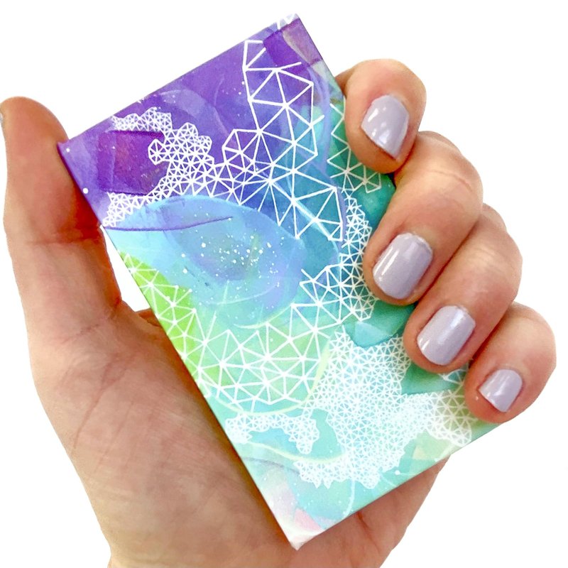 Introducing the Honeybee Gardens Duo Empty Compact for Eye Shadow – the ideal combination of design and functionality that will upgrade your eye shadow game. We partnered with the talented Kelly Marie of Messy Every After to create an exclusive, stunning compact art design that flawlessly captures her art style, vision, and philosophy. Combining saturated colors, movement, and organic flowing lines, Kelly’s vibrant artwork reflects the emotions and energy she experiences in her internal landscape, resulting in a one-of-a-kind compact that's a true work of art. Our top-notch Duo Empty Compact is specifically designed to fit 2 of your favorite Honeybee Gardens Pressed Eye Shadow Singles or any standard 26mm pan. Its endlessly refillable design allows you to easily create custom palettes for different occasions such as daytime, nighttime, and special events. Keep your most-loved eye shadow pairings within reach, giving you quick access to perfect eye makeup, wherever you go! Built to last, the Honeybee Gardens Duo Compact is composed of heavy-duty paperboard and features a hidden magnetic closure that guarantees a secure fit, keeping your eye shadows safe and protected from damage. It boasts of size dimensions of 4.5" W x 2.5" D x 0.5" H making it a compact and convenient choice to carry around.