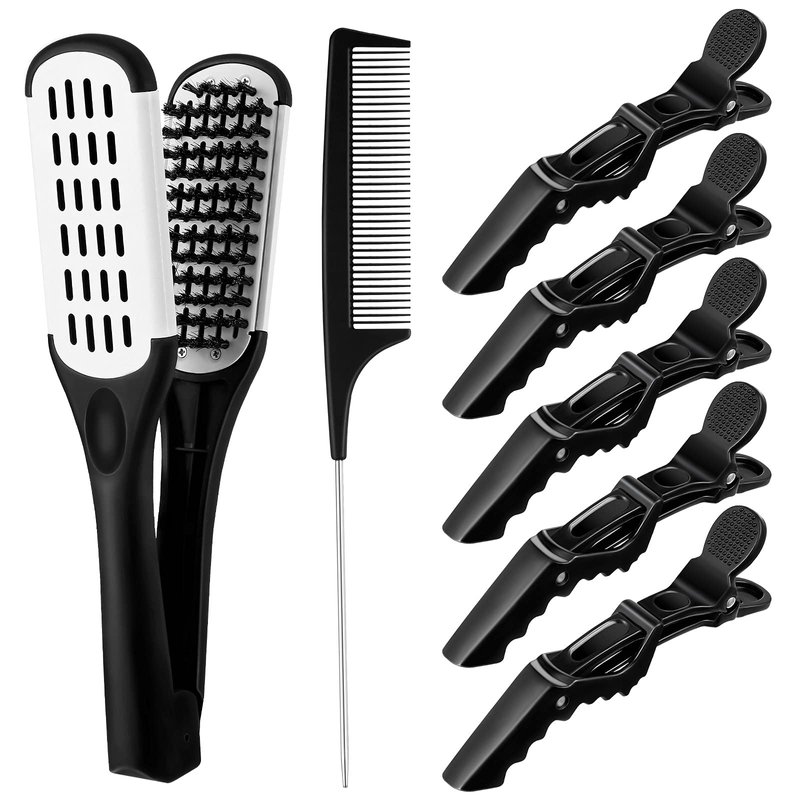 - Package contents: there is 1 piece hair straightening brush, 5 pieces alligator hair clips and 1 piece tail comb in the package, 7 pieces of total, considerate tools set, enough to meet your multiple needs of daily makeup needs, ideal for hair styling