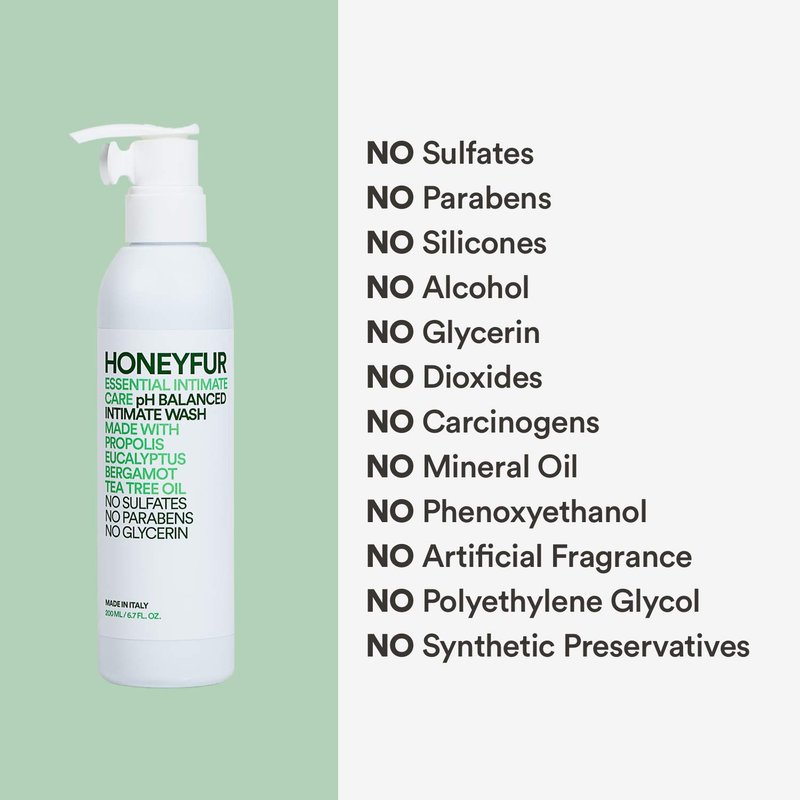 HONEYFUR Intimate Wash is formulated with natural ingredients to provide the optimal pH balance to the intimate area. Blended with native European essential oils to cleanse in a delicate way. High-quality ingredients with natural extracts leave the skin soft and velvety.