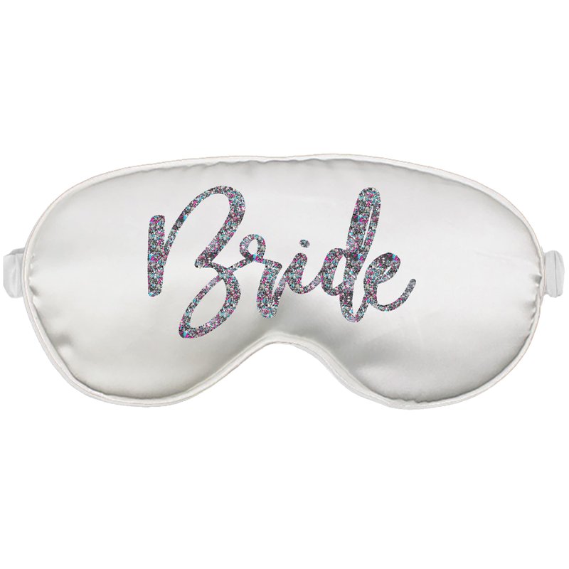 Honeymoon Gifts for Bride to Be - Black Multi Sparkle Glam Bride Satin Sleep Mask - Bachelorette Party Gifts - White Eye Mask(BLK Glm BRD)