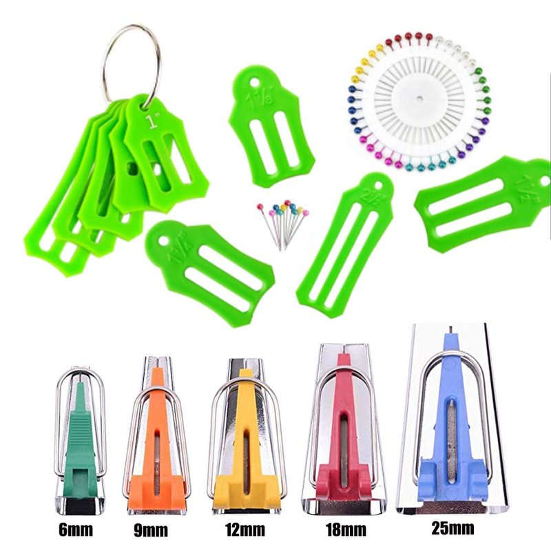 HONEYSEW Set of 15 Size Fabric Bias Tape Maker Tools Fabric Sewing Quilting Bias Binding Maker Come with 40 pcs of Multi-Color Quilting Pins Jelly Roll Sasher Tool Set