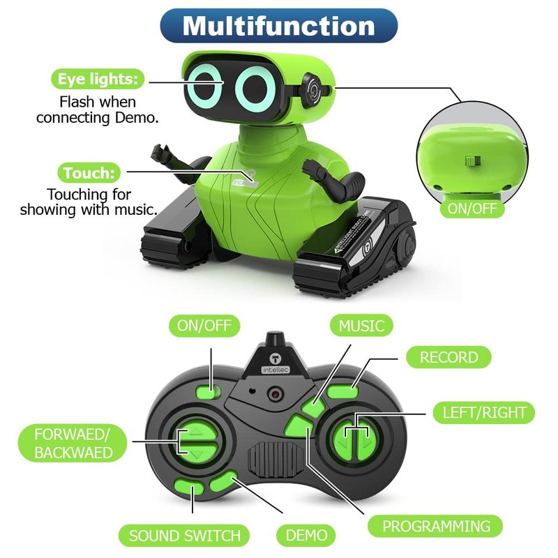 - 【Educational Multiple Play Ways Robot Toy】This is a fun educational robot toy with 15 kinds of music, 28 procedures can be programmed, the sound can be switched on and off according to the needs, recording and many other special play methods. It can well develop children's hand-eye coordination and improve their motor skills, color recognition and creativity.