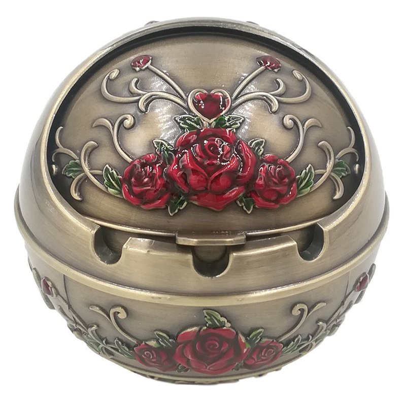 - ELEGANT ROSE PATTERN DESIGN,A wonderfull vintage windproof ashtray to brighten everyone's eyes and light up your room with quaint rose embossing pattern