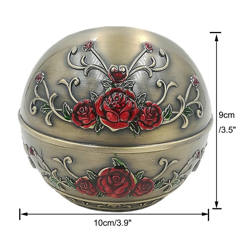 Honoro Windproof Ashtray with Lid for Outdoor and Indoor Use,Metal Portable Cigarette Ashtray,Ball Ashtray,Red Rose,Bronze