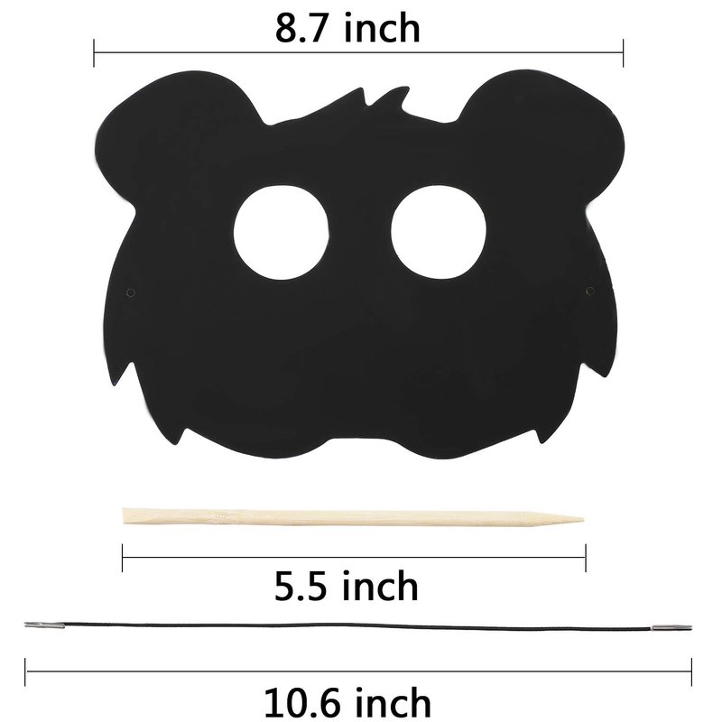 - Size details: each scratch paper animal mask is approx. 22 cm/ 8.7 inch in length, each black elastic band is approx. 27 cm/ 10.6 inch in length, and each wood stick is approx. 14 cm/ 5.5 inch in length, suitable size for drawing