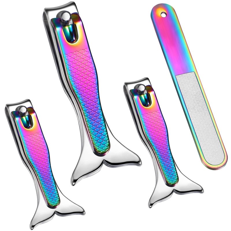 - What You Get: there are 4 pieces nail clippers set, including 1 piece big size fingernail clipper in mermaid style, 2 pieces small size toe nail clippers in mermaid style, 1 piece colorful nail file, meeting your comprehensive requirement of nail care