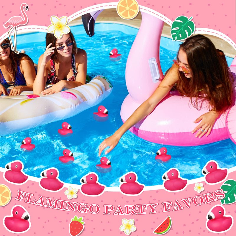 Honoson Flamingo Rubber Duckies Bulk Pink Flamingos Bath Toys Floating Squeak Flamingo Toy Seasonal Holiday Rubber Ducks for Baby Shower Party Favors, Cake Decoration, Classroom Prizes (24 Pcs)