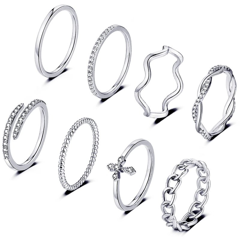 - ✦Classic Eternity Rings✦ 8 PCS gold/silver stacking ring set for women, versatile and classic. Sparkling Diamond Eternity Rings, Simple Twisted String Rings, Diamond Open Rings, Gold Chain Rings, Wave Rings, Plain Rings, Cross Rings, Elegant and stylish designs Simple yet timeless, these thin silver gold ring sets are perfect for an engagement or wedding.