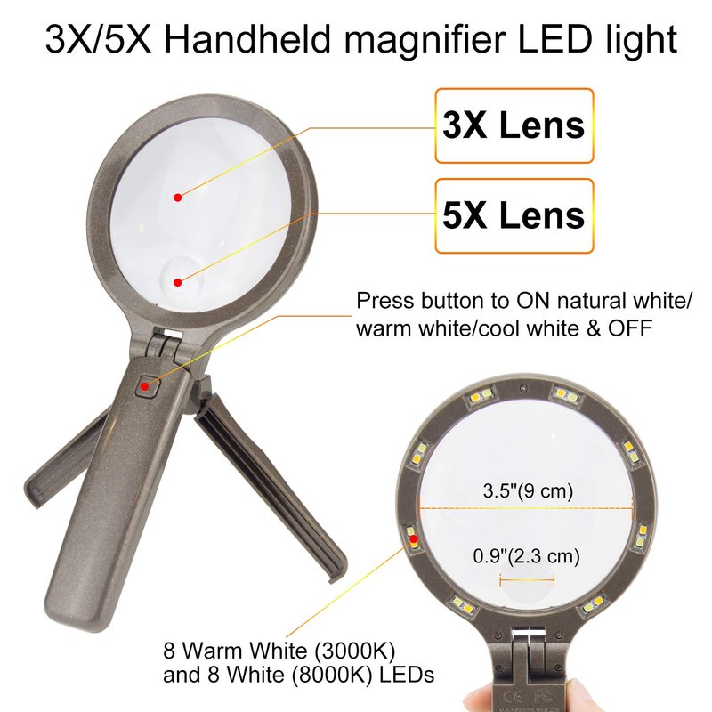 - ►[Handheld and Hands Free Magnifier ]--The Magnifier with led light can be handheld or tripod standing to reach your widely using requirement.