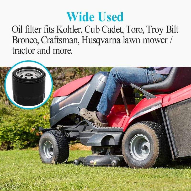 - 【Wide Compatibility】Lawn mower oil filter, for Cub Cadet KH-12-050-01-S, 1500 and 2000, XT1 XT2-series, Husqvarna YTH20K46 YTH21K46, Craftsman 42 inch, Gravely, Toro, Hustler, Troy Bilt Bronco mower tractor with Kohler engine oil filter.
