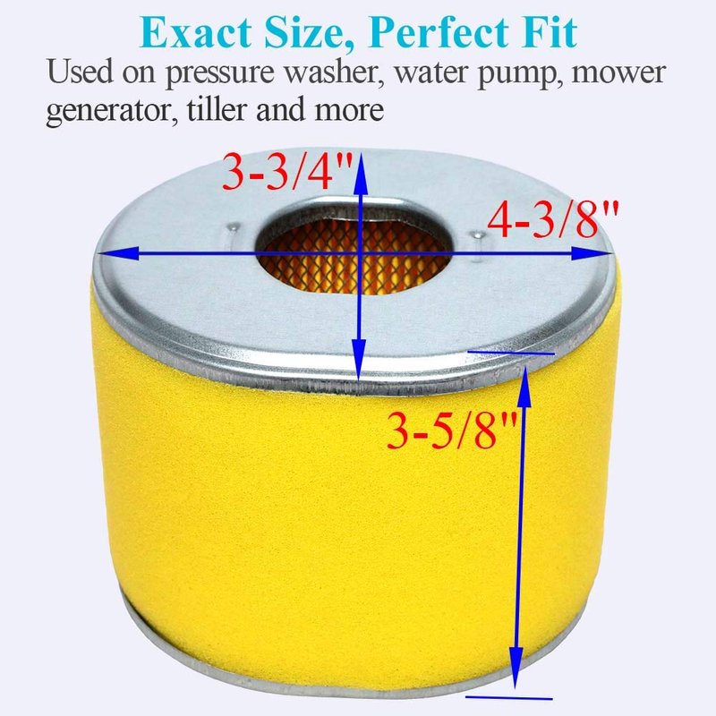 - 【Perfect Fit】Replace small engine air filter, exact size, fit like a glove, easy to install. A simple and fast maintain pleasure, improve engine efficiency and provide reliable protection. Filter size: 4-3/8" length x 3-3/4" width x 3-5/8" height. Warm Note: This is not GX240 GX270 air filter which is smaller than this item.