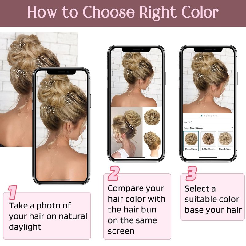 - [Color Difference] Our 100% human hair buns have a natural color, unlike synthetic alternatives. Due to screen and production variations, color swatches/photos may differ. Handmade components contribute to individual differences. Photos give a good idea, but actual colors may vary. Please do not hesitate to contact us for any doubts or suggestions
