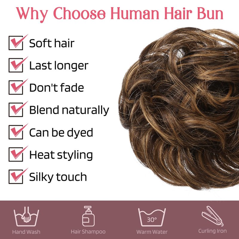 - [High Quality] Crafted with quality materials and construction, this human hair messy bun is durable enough to withstand daily wear and styling. It maintains its shape and appearance over time, ensuring long-lasting enjoyment and versatility