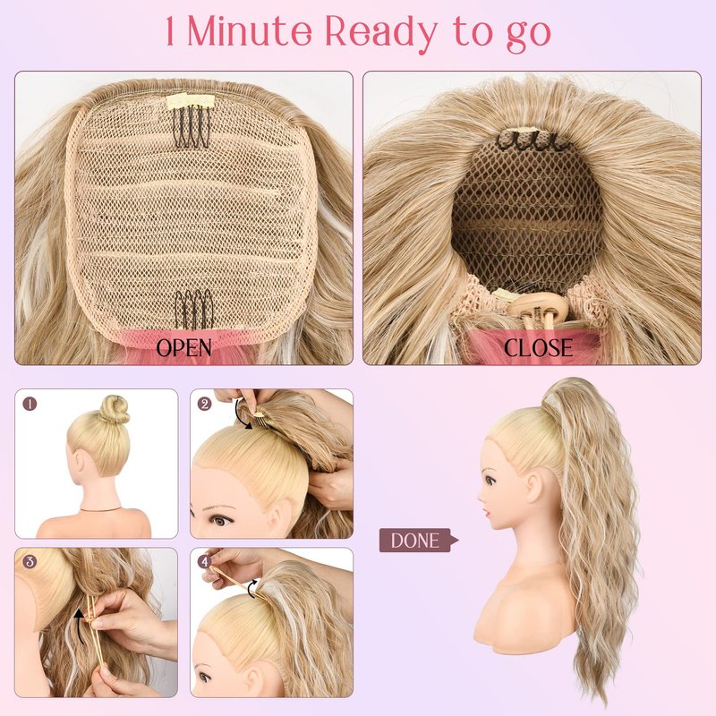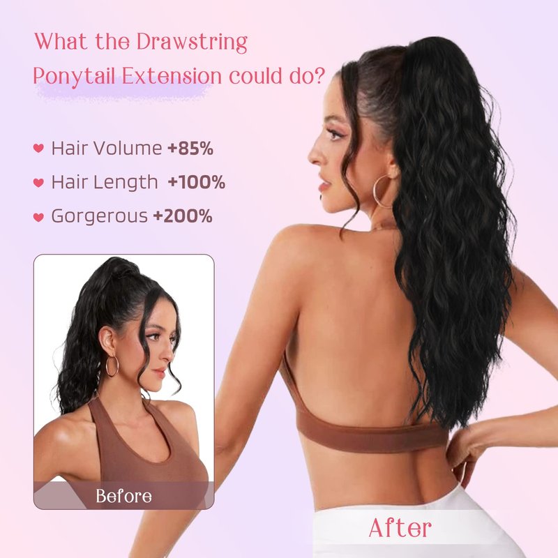 - [Time-Saver & Beginner Friendly] You only need to tighten your hair to a bun and then put the drawstring ponytail extension to you hair and a perfect curly ponytail hairstyle show up, perfect for switching up your look without the effort