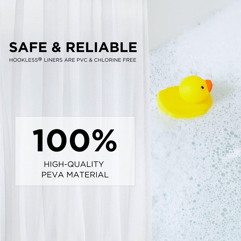 - ENVIRONMENTALLY-FRIENDLY – Made with 100% high quality and eco-friendly PEVA material free of PVC and chlorine, which means no unpleasant plastic smell. Containing significantly less volatile organic compounds than PVC liners, Hookless PEVA shower liner is better for you and your family