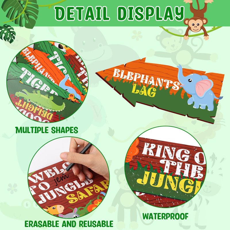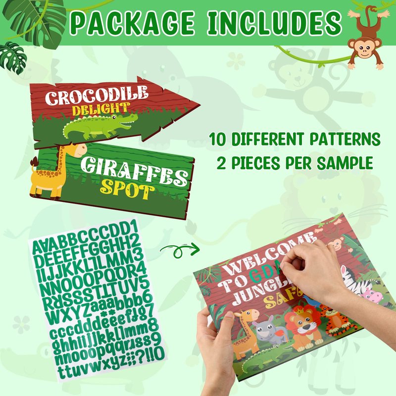 - Rich in quantity: You will receive 20 pieces printed with 10 different jungle animal party signs, 2 pieces of each animal style, with 1 letter stickers can be DIY, use these decorative signs to set up a safari party, and family or friends to explore the secret jungle world