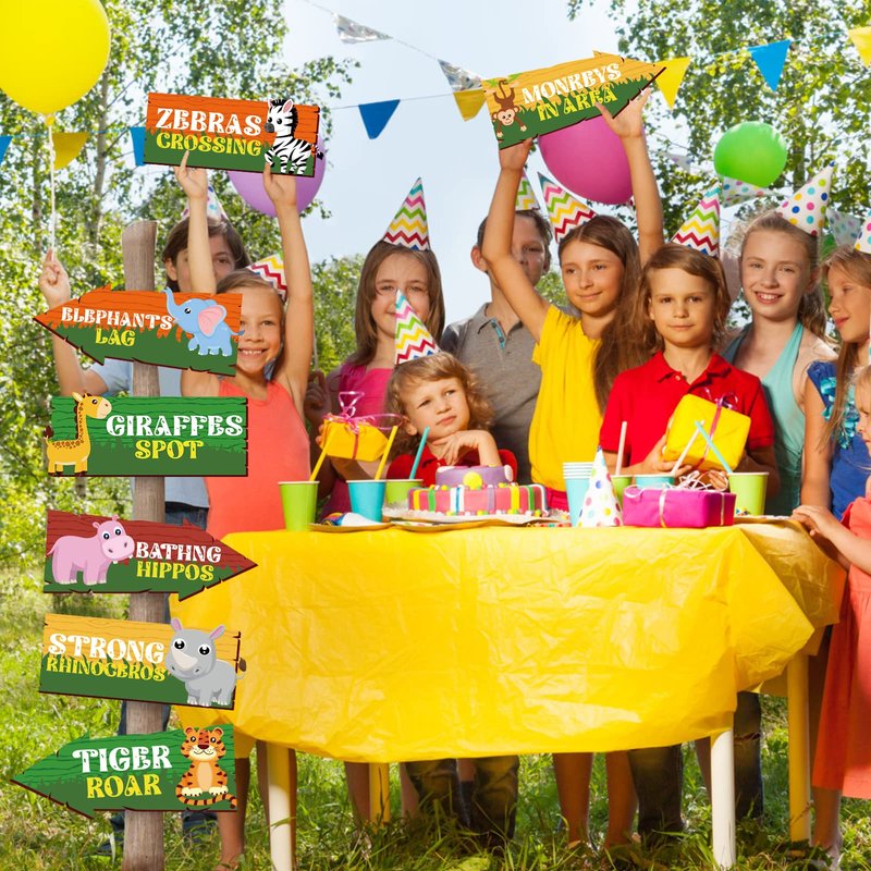 - Carefully crafted: Wildlife welcome sign made of thick card, not easy to break, printed on one side, designed as rectangle or arrow, take large font logo, bright color easy to attract attention and read, clear indication of party theme and direction. Note: Wooden stand is not included