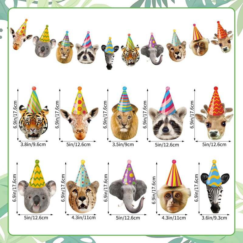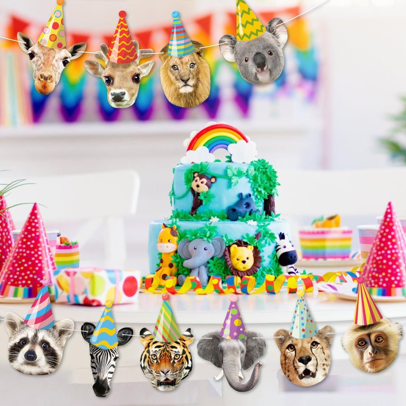- Reliable Quality: This party animal garland is made of premium cardstock, each banner flag card measures approximately 7" x 4.7", sturdy cardstock ensures durability, printed with vivid wild annimal faces to liven up your safari birthday decorations