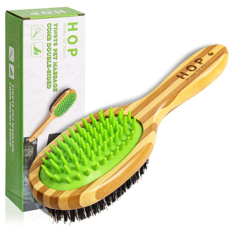 - Two sided pet brush two in one dog hair brush. One side of the silicone head is used for hair removal and massage. The side of the brush can remove loose hair and debris on the surface. It is suitable for cats or dogs of all types and sizes. The affordable pet comb can help you save the cost of your pet and reduce the time you spend cleaning your pet.