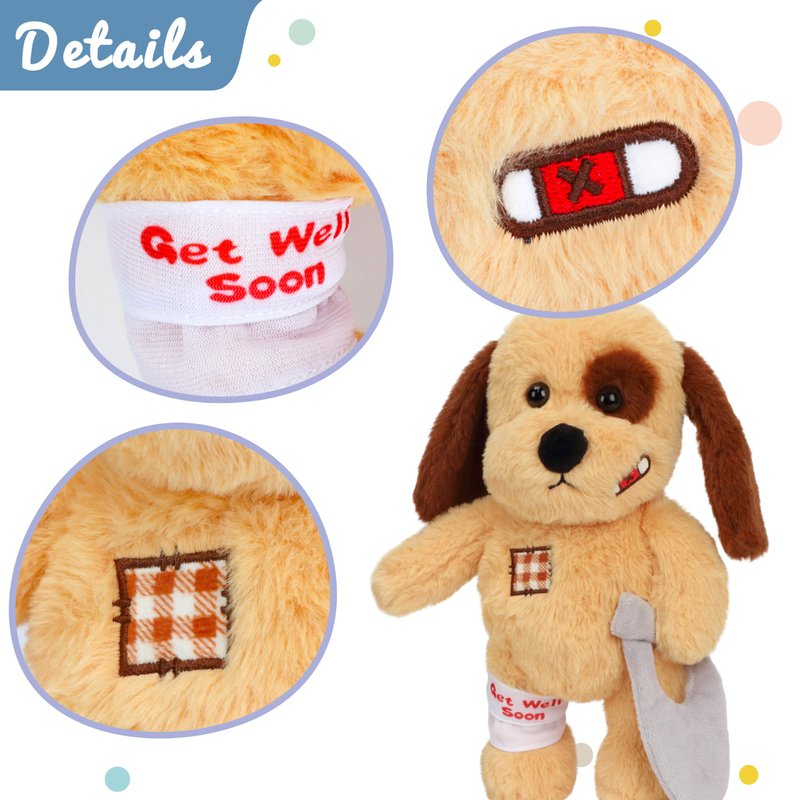 - Heartwarming Gift: This adorable stuffed puppy with a bandaged leg makes a thoughtful get-well gift for children recovering from injuries or illnesses.