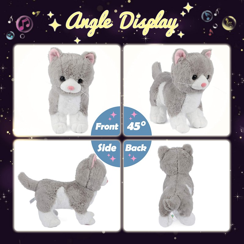 Hopearl LED Musical Stuffed Kitty Light up Singing Plush Cat Adjustable Volume Lullaby Animated Soothe Birthday Gifts for Kids Toddler Girls, Grey, 13.5''