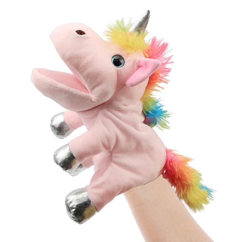 Hopearl Plush Unicorn Hand Puppet with Open Movable Mouth for Imaginative Play, Role Play, Interactive Toy for Storytelling Teaching Puppet Theater, Birthday Gifts for Kids Girls, Pink, 12''