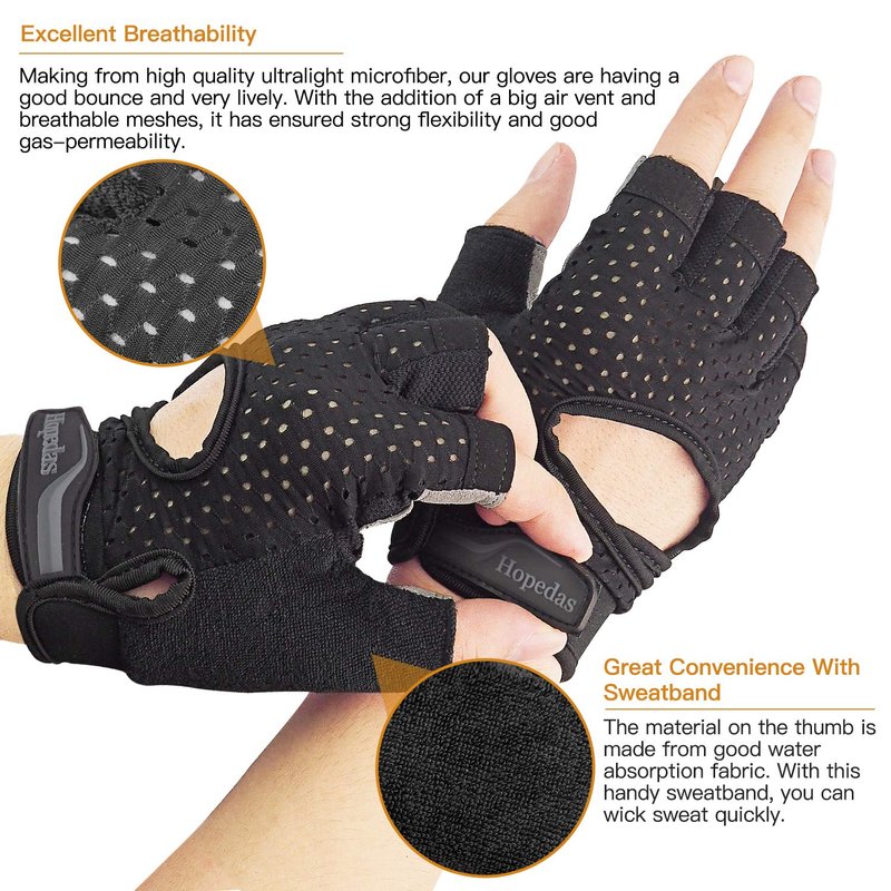 Hopedas Workout Gloves Weight Lifting Gloves Palm Support Protection for Men Women, Exercise Gloves Sports for Training, Fitness, Gym, Black
