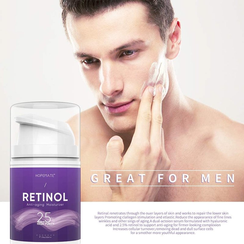 HOPEMATE Retinol Cream, Anti-Aging Moisturizer Cream 2.5% for Face and Eye Care, Anti-Wrinkle Essence with Hyaluronic Acid, Vitamin E and Green Tea, Day and Night Cream, 1.7 Fl.Oz, 50ml
