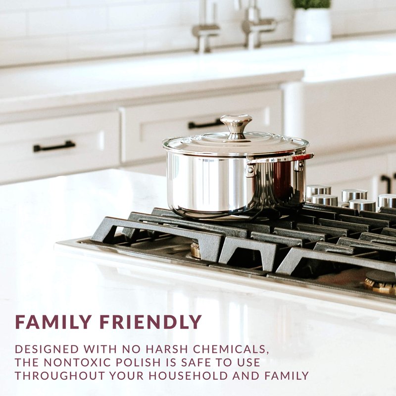 - Streak-Free Protection: This polish and cleaner removes spots and blemishes on your counter and acts as a protective layer to mitigate dirt, stains, and fingerprints without any residue
