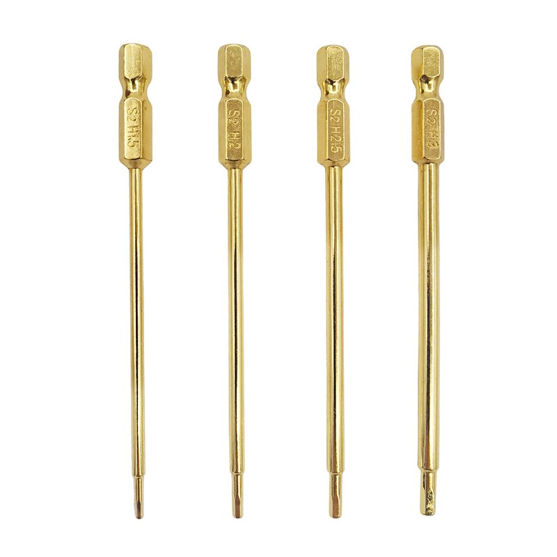 HOPLEX RC Hex Bit Set 1.5 2.0 2.5 3.0mm Hex Head Allen Wrench S2 Steel Titanium Hexagon Screwdriver Tool Kit 1/4" Hex Shank 3.9" Long for Bit Electric Screwgun/Power Drill RC Repair Working