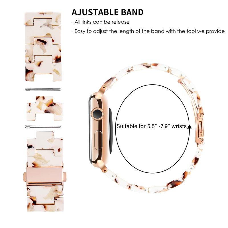 HOPO Compatible With Apple Watch Band 38mm 40mm 42mm 44mm Thin Light Resin Strap Bracelet With Stainless Steel Buckle Replacement For iWatch Series Ultra 9 8 7 6 5 4 3 2 1 SE(Nougat White/Rose