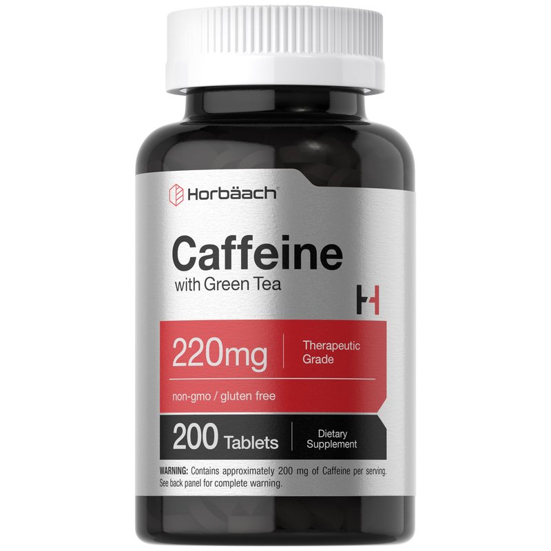 Horbäach Caffeine Pills 200mg | with Green Tea | 200 Tablets | Vegetarian, Non-GMO & Gluten Free