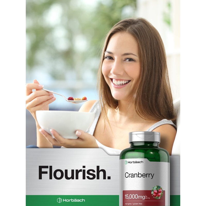Horbaach Cranberry contains all the beneficial components of cranberry juice with no sugar added. Each quick-release capsule is packed with the equivalent of 15,000 mg per serving of Cranberry Fruit plus Vitamin C for superior antioxidant support. Our formula is gluten-free and non-GMO, with no artificial flavor, artificial sweetener, or preservatives, the best source of cranberry nature can supply!