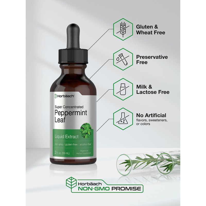 Horbäach Peppermint Leaf Liquid Extract | 2 fl oz | Vegetarian, Non-GMO & Gluten Free Herbal Supplement