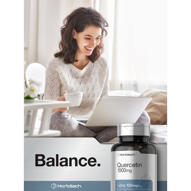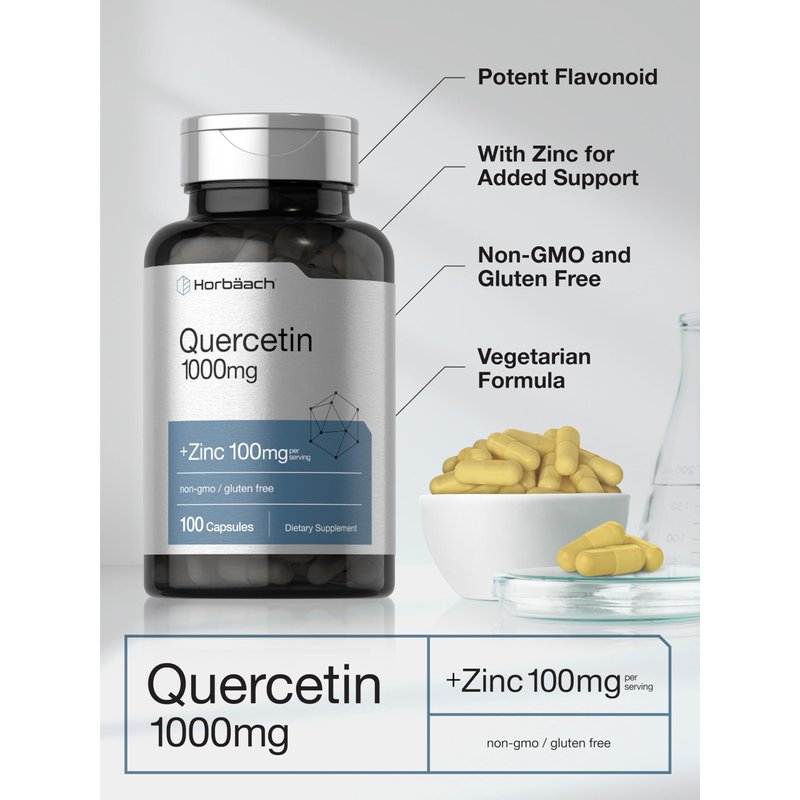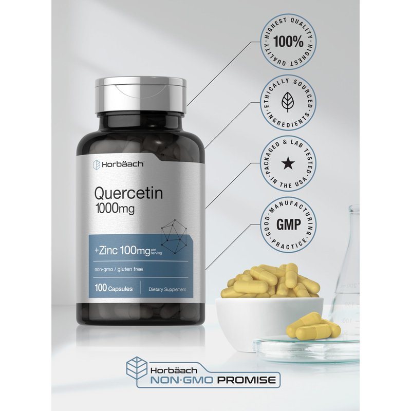 Horbäach Quercetin 1000mg Capsules | with 100mg Zinc | 100 Count | Non-GMO, Gluten Free Supplement | High Potency Formula