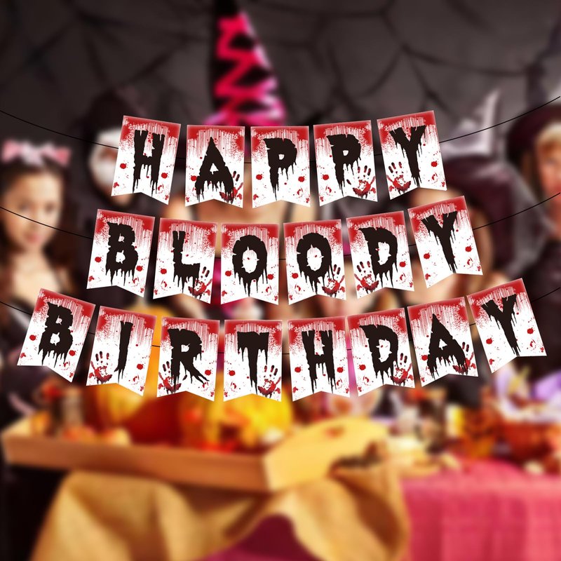 - .Package: 3x Happy Bloody Birthday letters banner.
