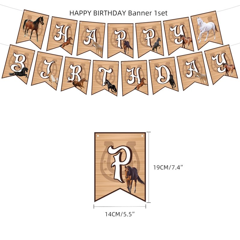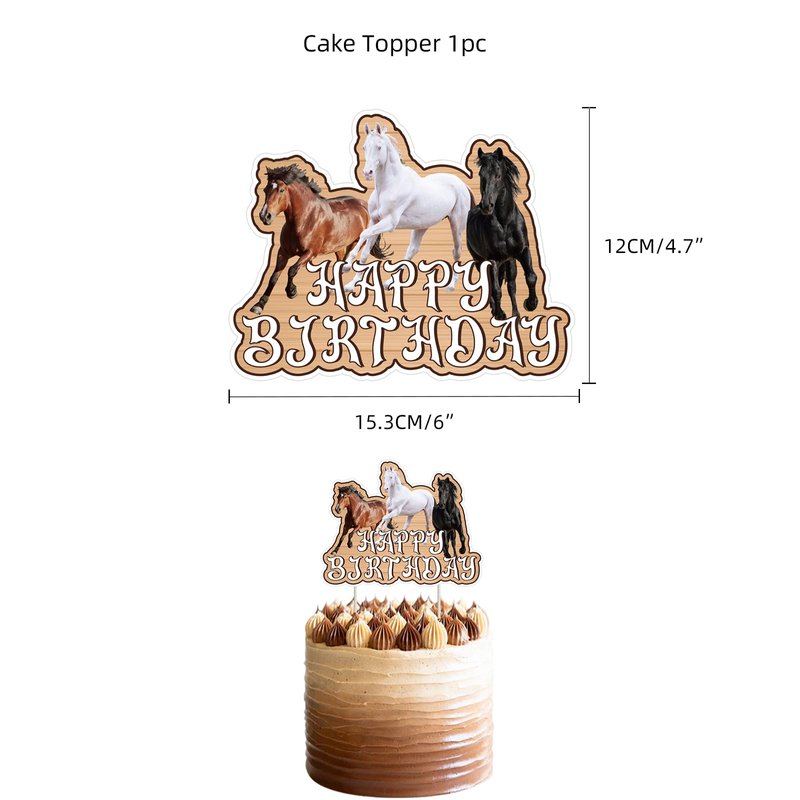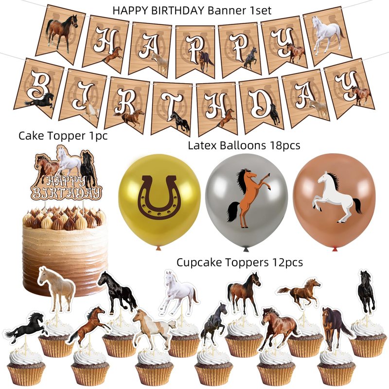 - 🐎【What You'll Get】1 set Horse Happy Birthday banners, 1 horseshoe cake topper, 12 cupcake toppers with horses and hay bales, 18 balloons with horse designs and farm scenes. This rustic horse decoration set will infuse your celebrations with a touch of country charm and equestrian spirit! From the vibrant banners to the adorable cupcake toppers and eye-catching cake decoration, every element is meticulously crafted with premium materials to ensure safety and durability.