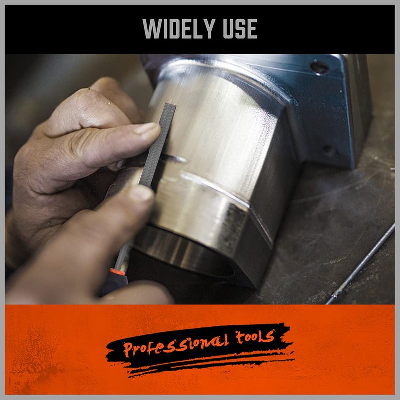 - Metal file is made of high hardness alloy steel. The fine grain of the file set is deeply quenched and coated to achieve long-lasting cutting performance.