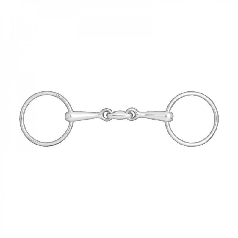 This bit offers a thin mouthpiece for horses with lower palates. A mild option for all around riding. The lozenge style mouthpiece prohibits lateral movement in the horse's mouth offering a very stable feel, while the double joint helps to prohibit the nutcracker effect. Loose ring cheekpieces allow more play in the bit and encourages the horse to learn self carriage. This bit is competition legal for most dressage classes where snaffle bits are allowed. 13 mm mouthpiece.