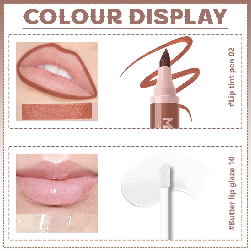 - Special Lip Combo: Nude peel off lip liner stain paired with clear lip butter gloss is a special lip combo which can make your lip plumper. The lip marker pen create the definition, while the lip gloss adds some glamorous shine to your lips, Gives your lips more fullness and definition.