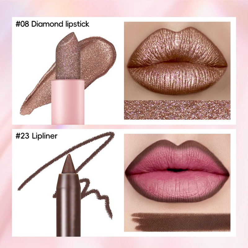 HOSAILY Metallic Dark Brown Lipstick Liner Set, Long Lasting Shiny Glitter Diamond Plump Lipstick Combos, Full Coverage High Impact Lip Color, Non Stick Cup Lightweight Lip Makeup for Women#8