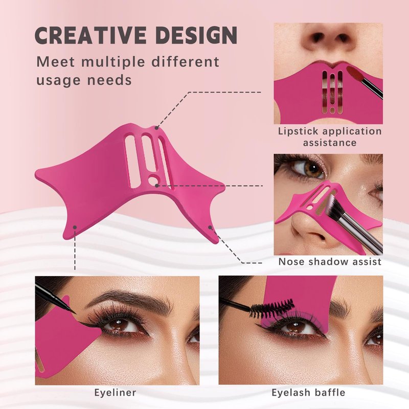 - 【Multifunctional Makeup Tool】Multifunctional beauty tool to meet the makeup needs of multiple areas. Not only can it be used as a nose-shadow trimmer aid, but also as an eyeliner stencil - to create a clean winged eyeliner, an eyelash shield- to help achieve a clean and neat eye look, and a lip peak aid - to create a plump and sexy lip shape.