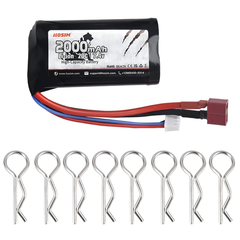 Hosim 1pcs 2S 7.4V 2000mAh 20C TPlug Female Connector Rechargeable Battery and 8pcs Car Shell Buckles, Safe & Fast Charging, Best for 9155 9156 Jumper T16 RC Cars Evader BX Airplane UAV Drone FPV