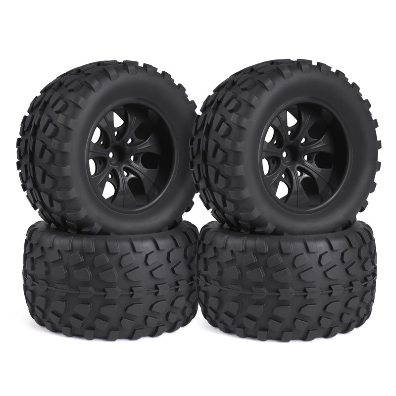 Hosim 70*125mm/2.76in*4.92in all terrain soft tires are suitable for 1:10 rc vehicle with 17mm Hex, makes your rc drift car in multi-faces. Creating your own design. Size for tire:70*125mm/2.76in*4.92in Package: 4 Tires+4 Sponge+4 hubs (NO glue included) Suit for 1:10 RC Crawler, which is 12mm Hex