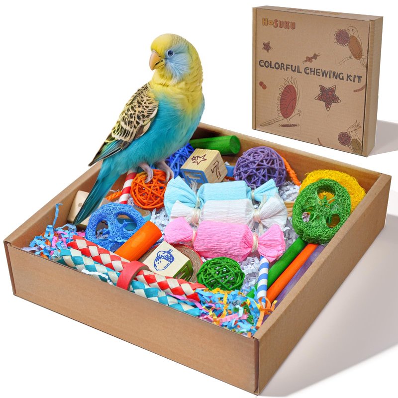 HOSUKU Colorful Bird Foraging & Shredding Toys Box – Safe Bird Toys for Parakeets, Cockatiels, Conures & Small Birds, Perfect for Christmas & New Year